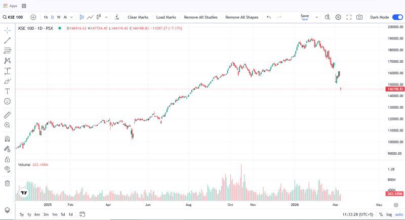 Monday could prove decisive for the KSE-100. The index has already lost its short- and medium-term trend structure on the daily chart and now sits just above the 50-week exponential moving average (152,287.73), the final technical support on the w...